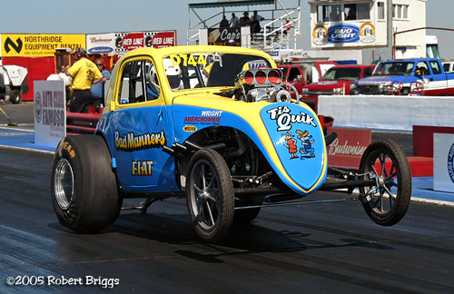 | The Bad Manners Fiat pulling the wheels up on Sunday. |