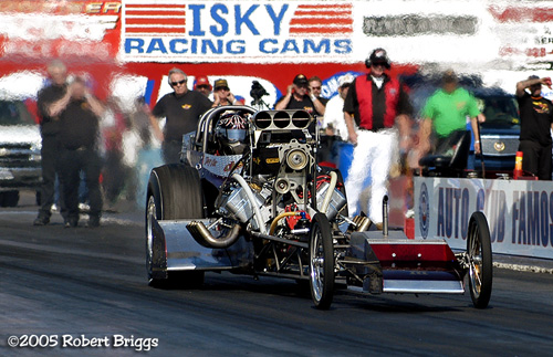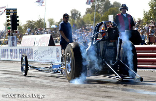 | Top Fuel Terry Cox qualified #3 with a fine 5.896 sec 248.61 mph lap. Terry ran an even better 5.872 sec 251.53 mph pass on his 1st Round win over Mark Hyla. |