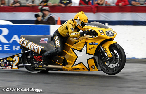 | Pro Stock Bike Angelle Sampey qualified 5th win a 7.074 sec 189.95 mph pass. Angelle pulled a red light in Round Two against Chip Ellis. |