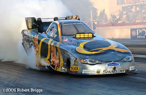 | New Funny Car Champ Gary Scelzi squeaked out a tight Championship by 8 points over his buddy but fierce competitor Ron Capps. |