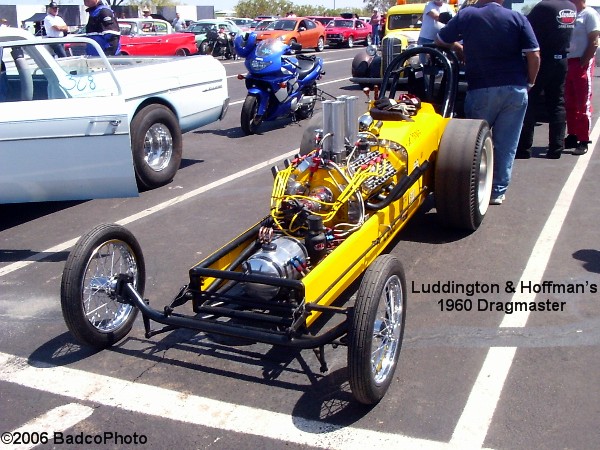 Did he say towing? Wayne Luddington and partner John Hoffman made the long tow all the way from Florida with two diggers in the trailer! John’s is a Jimmy Billings built chassis with a 261” Chevy truck engine for power. The other was Wayne’s 1960 (!) Dragmaster chassied Flathead powered ride. The Dragmaster has been ‘tweaked’ over the years to keep up with safety regs but still looks brand new.