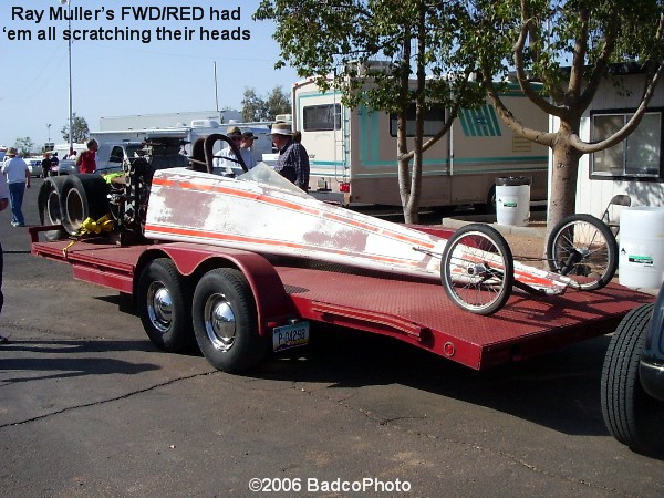 After the long ride to Arizona, the boys were itching to get out on the track. But John’s car had to be shut off as soon as it was fired in the pits. Sounded like the main bearings were damaged. That left Wayne’s flathead still in the hunt... that is until its second pass later in the day. The rear end broke just off the line putting an end to these guys’ racing.