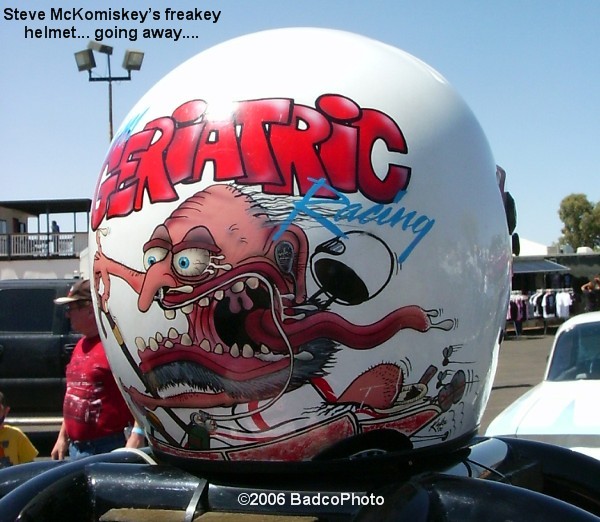 The ‘Los Coches’ crew consisted of Steve Kafka who also happened to apply the period correct paint to both the racer and the tow car (and that way out helmet). His work can be see below. More of his work can be found at www.kooltie.com I gotta thank all of the folks over in this corner of the Standard 1320 pit area for the good vibes.
