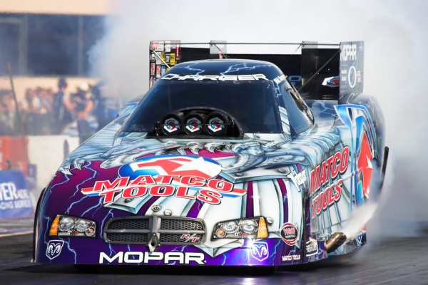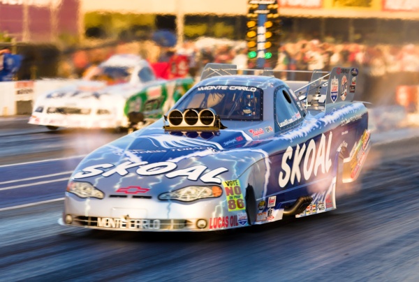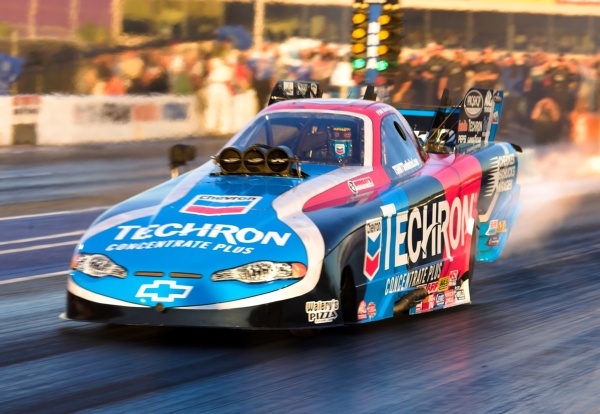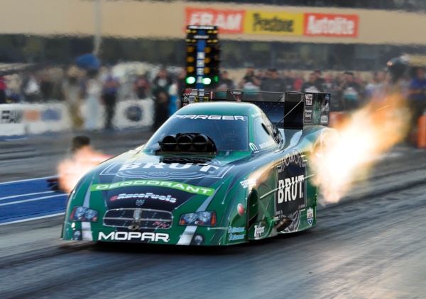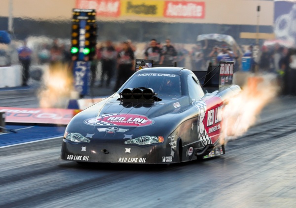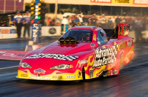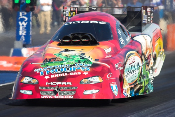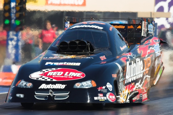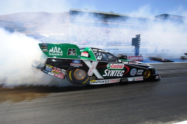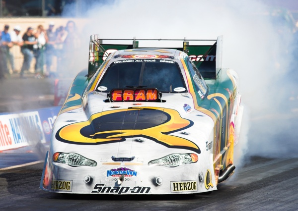 John Force… of course, of course. Force made it to round 2 of eliminations where he was taken out of the program by his teammate, Eric Medlen.