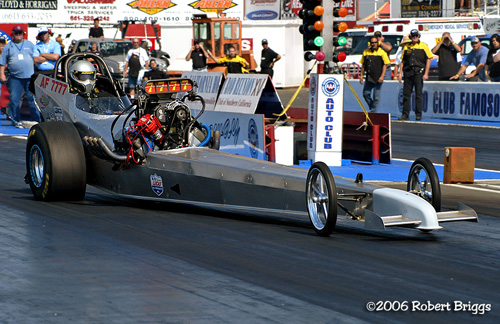 | Don Hampton's great looking Eagle AA/FD with a practice push down the 1320. Too bad the old push down isn't a requirement for today's Nostalgia racing. |