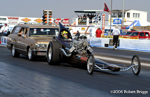 | The famous Bradford's AA/FA Fiat ran two exhibition races against Rat Trap running some of its best times ever. |
