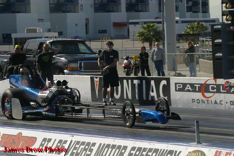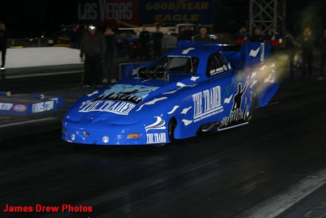 The Pedregon Brothers seem to have a handle on their funny cars. Tony in the Quaker State Oil and Cruz in the Auto Zone Chevy Monte Carlos should be threats at every race. Cruz was the quickest at LVMS # 2 Last Chance Testing. Frankie did not do any testing in the ex John Lawson racing operation.
