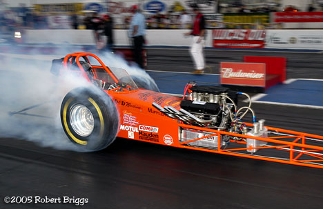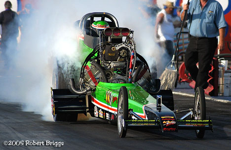 | AA/GS Chris Abbey was low qualifier with a 6.785 sec 206.95 mph but lost to John Peterson in Round One. |