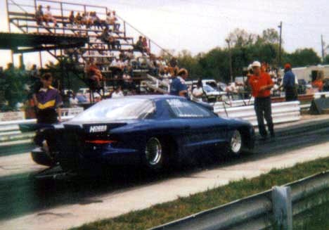 | Thomas Patterson's first Pro Mod, a 4 second Firebird that later crashed. |