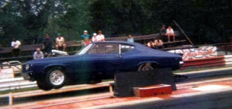 | Oklahoman Larry Price in his P/ST Chevelle running against the lighter Pro Mods. |
