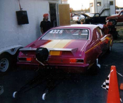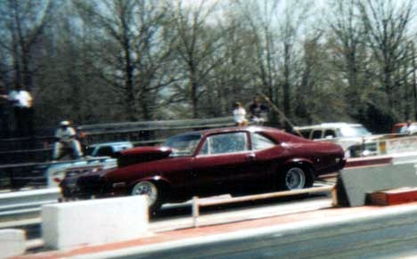 | A rear view of J.R. Rowland's narrowed blown small block Nova. This car got into the 4.90 range. |