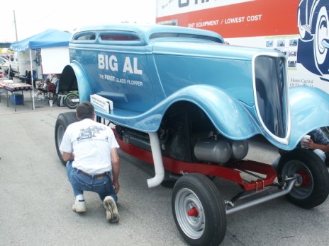 | Peter "The MadBrit" Broadrib towed in from Arziona with the "Moody Garage" Chevy. |