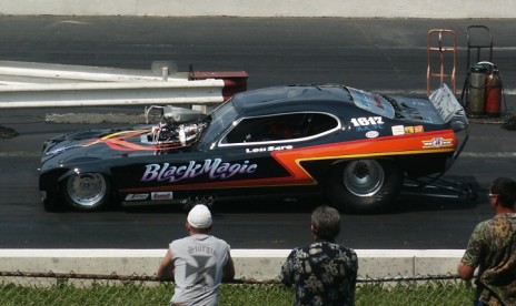| Lou Sgro had his "Black Magic" running strong with 200mph passes. |
