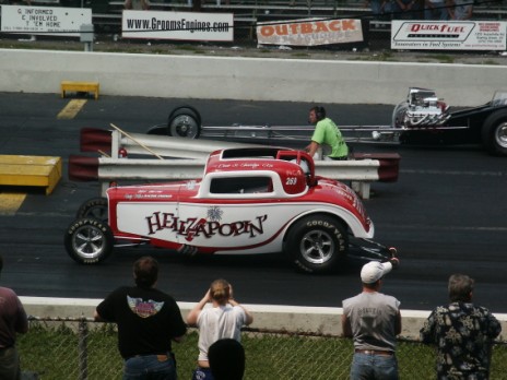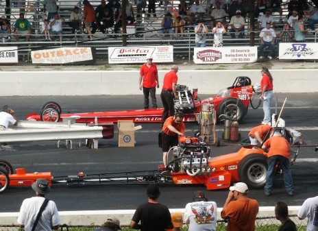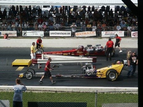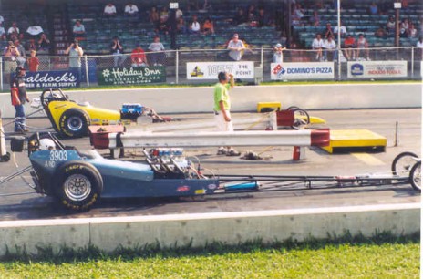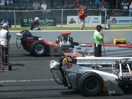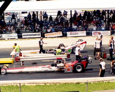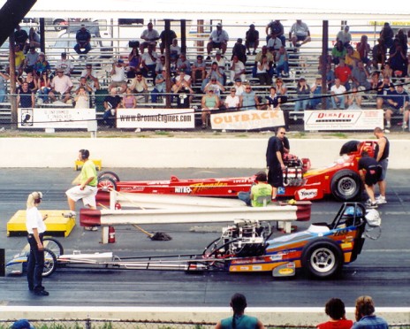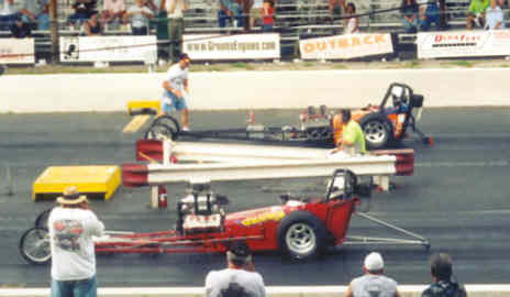 | 2003 Jr Fuel winner Pat Malloy from Virginia in the right lane lost to 2004 winner Scott Parks from Kansas in the first round of Jr Fuel "A." |
