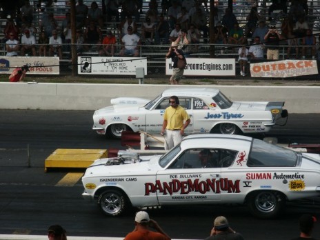 | The Pandemonium Barracuda takes on the Jess Tyree Pontiac. |