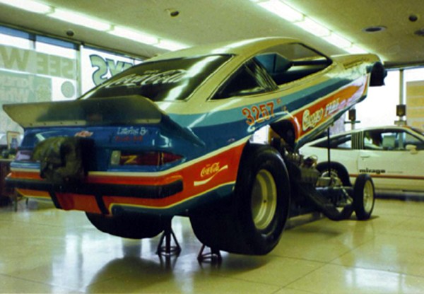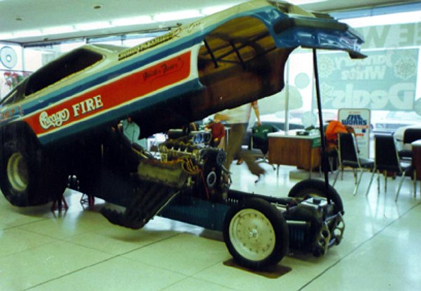 | Mike Faser burning out in the Chicago Fire Monza at the legendary Union Grove dragstrip. (Ray-Mar Photo) |