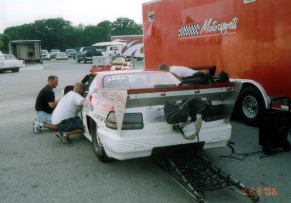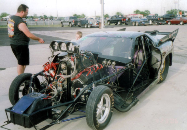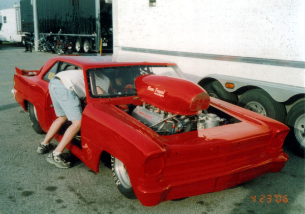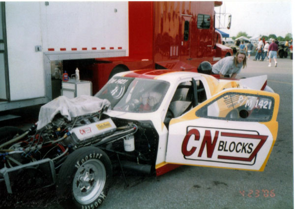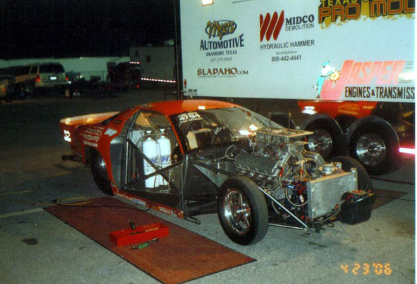 | Carb guru and now engine block mogul Chuck Nuytten made a rare appearence at Caddo Mills. The team ran a 4.50 to DNQ but the trip home was only a couple of miles. |