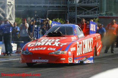 | This is the first funny car that has not been black for Bucky Austin. He was mighty red after his brand new Brad Hadman built racer did not pass NHRA tech. |