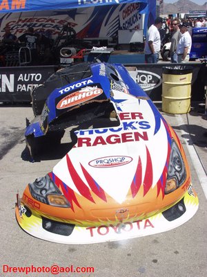 | Phil Burkart Jr. had a little trouble on this run -- he turned it in to a topless Toyota. |