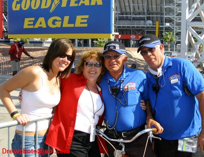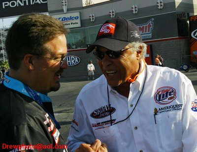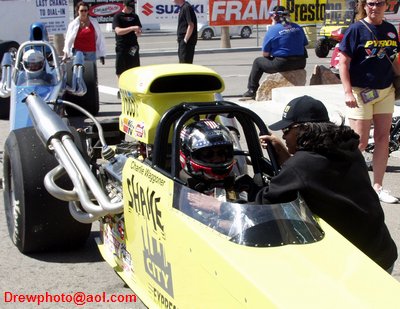| Snake talking to Jon O after getting his 100th win in NHRA Winston, POWERAde drag racing competition. |