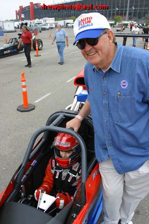 | Fast Jack helps Brittany stage during race weekend. Look closely -- Fast Jack is in his firesuit! |