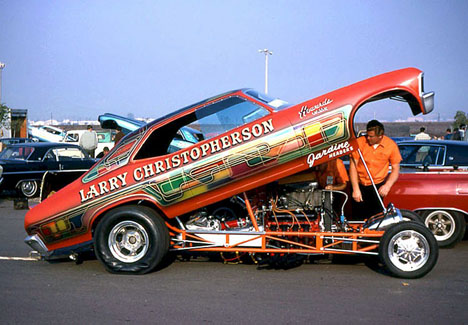 In 1969, Larry Christopherson came from Arizona obscurity to national prominence. He went on tour with a super sano Chevy Nova that could win car shows as well as drag races. The Nova was a prime example of the era’s psychedelic style paint jobs. Christopherson took Mike Hamby on tour. Hamby sometimes drove the Nova, as did famed “King Camaro" driver Dean LaPole. The Nova ran times in the seven-second range with a best of 7.49. (Photo courtesy of Mike Ditty; info from Draglist.com Files)