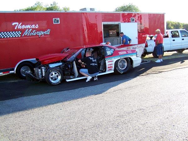 | Heath Harvey in the Thomas Motorsports Grand Am broke on its only pass. |
