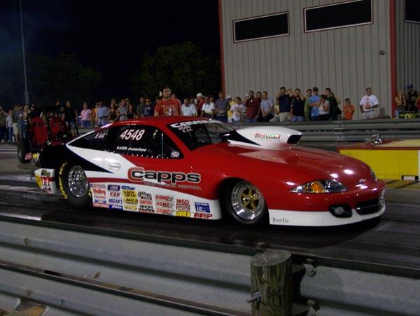 Keith Mawhee tested his E/AA Cavalier sponsored by Capps Rentals. The screaming little small block ran 5.11 at the Mills.