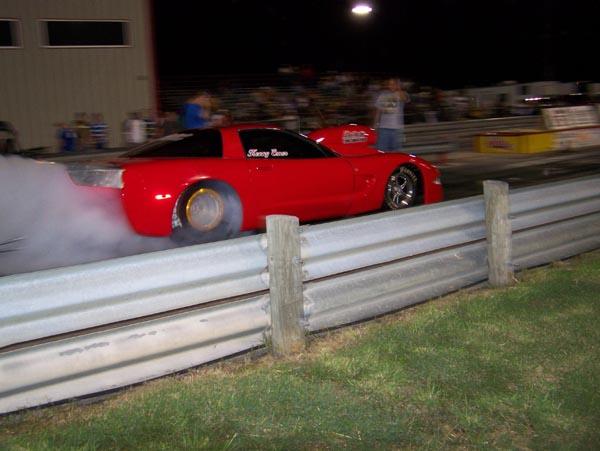 Two 10.5 racers also tested at Redline. King of the Hill Outlaw 10.5 racer Kenny Esner made several runs in his new 06 Corvette, running a best of 4.84.
