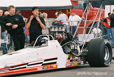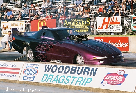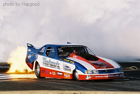 | Todd Ashwell led TAFC qualifying on Saturday. Note to fuel FC buffs: this shell is the ex-Jim Dunn Penthouse/Grant Downing Standard Abrasives Firebird. |
