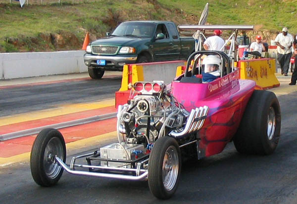 | Cool injected big block dragster of John Ring. |
