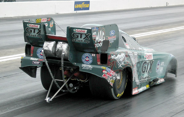 “On a Holeshot,” nearly became a mantra for the race announcers. More competition passes than usual in the top four professional classes were won by the slower machine, due to faster reaction times by the winning drivers. Two holeshot victories were scored in Top Fuel Funny Car, both by event winner Tony Pedregon, who single-handedly took out all three of the John Force team race cars, beginning in round two and ending in the final with a holeshot victory against Team Force racer Robert Hight. Pedregon carded a 4.740 second pass, and his .067 second reaction made the difference after Robert Hight had a slightly slower .078 reaction, negating the advantage of his slightly quicker 4.738 second pass.