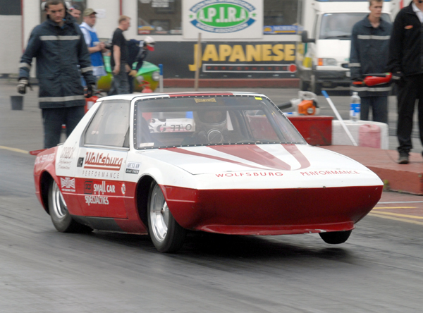 The methanol burners were equally as exciting with Bob Glassup’s ‘Extreme Racing’ Topolino, Clayton Rounds Rebel T and Frank Bennett’s Fiat all putting in some full powered passes as low as 7.6’s. However, the weekend didn’t go without a few breakages, the most notable when Pete Radcliffe’s front suspension gave up during back up after the burnout. A very scary moment indeed, and handled calmly by crew chief Neil Townson.