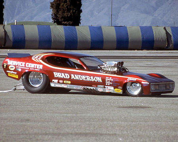 Brad Anderson is one of the great alcohol racers of all time. He has built more alcohol combinations than anybody. Brad's '75 Dodge Dart was very memorable in performance and appearance.