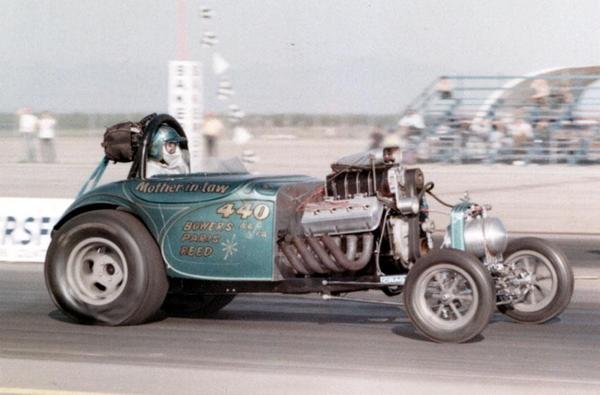 Red Paris was one of the fastest AA/FA racers in the sixties in the Bowers, Paris & Reed "Mother-In-Law" Bantam. The little green Hemi ran in the 200 M.P.H. range and challenged the best altereds of the day in So-Cal.