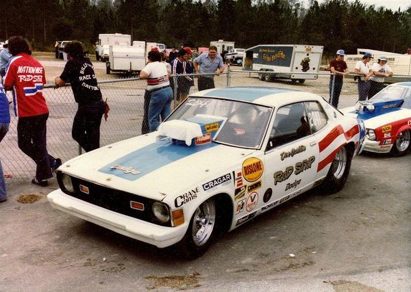 | Don Carlton's final Colt, the car in which he lost his life. The Rod Shop machine ran low eights while competing in B/Altered. (Photo by Thomas Nagy) |