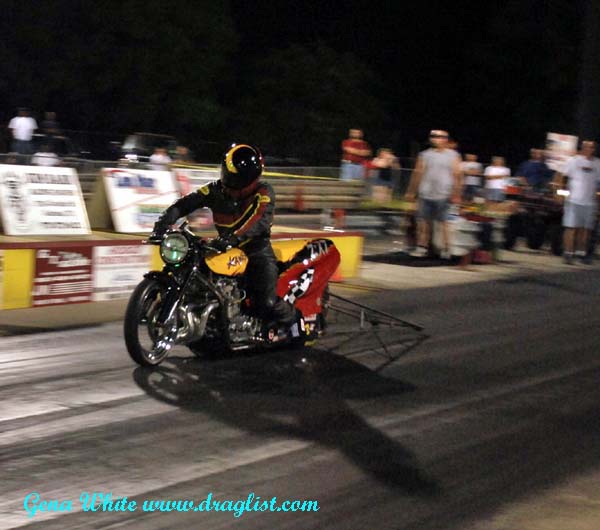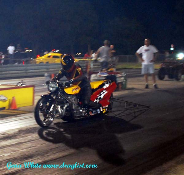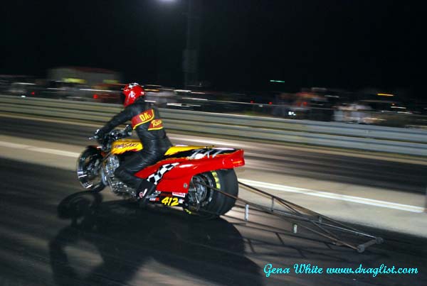 Here is one of the high quality motorcycle teams that shows up at Redline Raceway just to take part in its test and tune program! The D.A. Racing Kawasaki runs mid-fours on the eighth mile track at Caddo Mills. The D.A. gang always entertains the crowd.