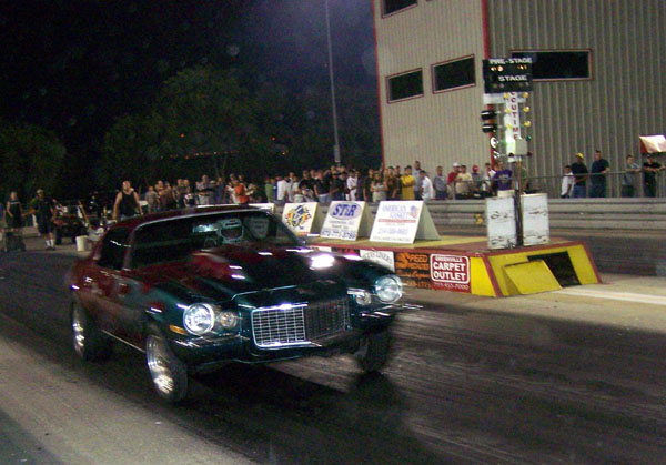 | This second generation Camaro has a large charge of nitrous backing the big block. |