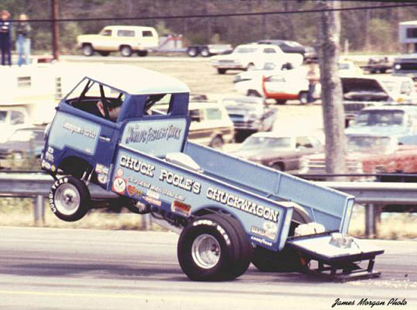 Chuck Poole was one of the sport's true wheelstanding stars in his famous series of Chuckwagon race cars. He ran a series of Dodges and VWs over the years but was probably most well know