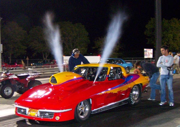 Rick Thornton took his Hans Fuestal tuned Corvette to times of 4.50 and 4.53 in testing at Redline Raceway. This makes him the fastest Outlaw 10.5 racer in Texas. Rick made a couple of wild passes with the wheels up way past the haft track point. The team got the weight balance right and broke into the mid fours!