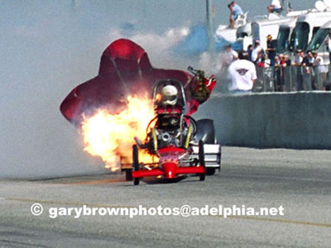 Fred Farndon got awful toasty at the March Meet, but held it together like the veteran fuel pilot he is. The announcer said that the safety equipment did a good job. Happily, I saw him walk off unaided by any medical personal to his team tow car.