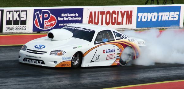 New to the Pro Comp Field of cars Was Richard Sundblom’s Jerry Bickel built Chevrolet Cobalt from racer Tom Hammonds and looked great on the track but as delivery was only a week ago was having carburettor problems but went from first Round in 7.012seec / 199mph over Jan Palmqvist‘s losing 7.143sec / 195mph.