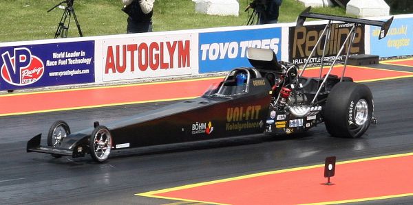 Andy Carter in the first qualifier hit tyre shake early and shut off for3rd qualifier on 8.752 sec / 86 mph with Jari Halinen top shot on 5.206 sec / 269mph and Anita Makela second on 5.787 sec / 171mph