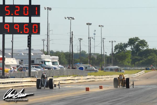 Joe Scarlata of Garland, Texas made his first showing behind the wheel of Robie Robertson’s Corpus Christi based machine. Ted McCord made his first outing in Mike Brown’s beautiful “Senior Moment” Tulsa based entry. Former Pro Modified racer turned front engine dragster pilot Willie Brainerd of Tulsa debuted his “Trouble Maker” machine. Howard Tribbey, Thomas Hixson, Brian Andrews along with Ricky Marshall, Logan Pursur, Paul McCann and Kenny Stallard all also came to entertain the capacity crowd at North Star Dragway.