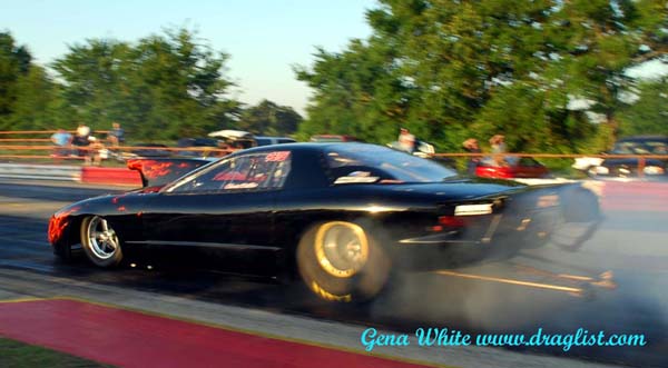 Chris Dollar showed why he is the number one in points with a good 4.76 148.58 run in the beautiful flamed Firebird from Wichita Falls. Ed Roach had problems on his run and shut off to a 5.95 81.76 run. Dollar moved to the number three spot with that 4.76 pass and Roach kept the number two spot. Pairing up for the second time was H.T. Wilson and Jerry Cain, Cain got there first with a great 4.73 147.30 run while Wilson ran a 4.85 that loose on the top end. That put Cain in the number three spot and Wilson number six.