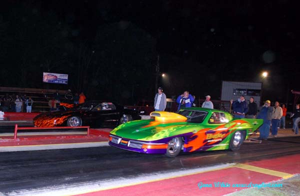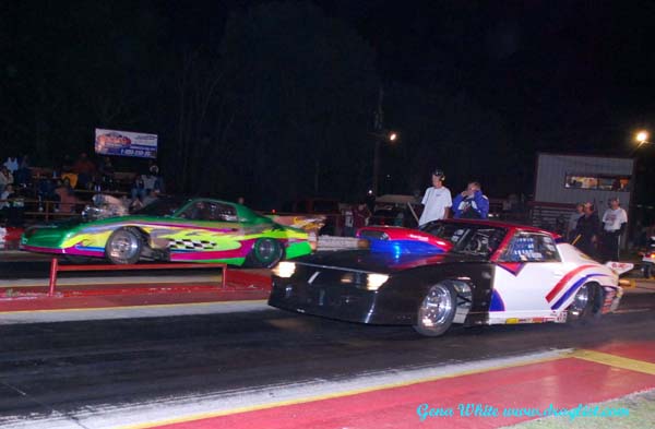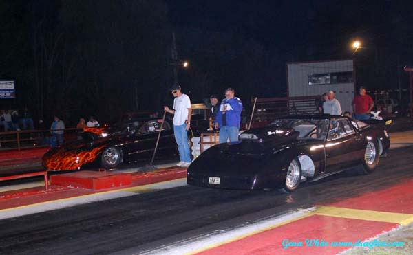 The Outlaw Top Sportsman Association made their 2008 debut at Paris Drag Strip. The track has been leased this year by OTS racer Bart Jetton. Jetton had the facility in tiptop shape for the racers Saturday night. Eight of the finest OTS racers made it to Paris to race, many other racers were awaiting parts so they could race leaving the field at a minimum. 2008 OTS points leader Chris Dollar was there to keep his strangle hold to the points lead in his flamed Firebird. The team of HT and Michele Wilson was there to race and to get some test time in for next weeks ADRL race in Valdosta. David Baldwin brought out the beautiful Butler Motorsports’ 63 Corvette. David Smith had the injected American Car Imports 55 Chevrolet of Paul Smith ready to race. Randy Reschner appeared in the repainted Money Shot Corvette. Ed Roach represented the Red Oak Gang in his Firebird. The only blown car was the Cain's Concrete Co. Trans Am driven tonight by Jerry Cain.