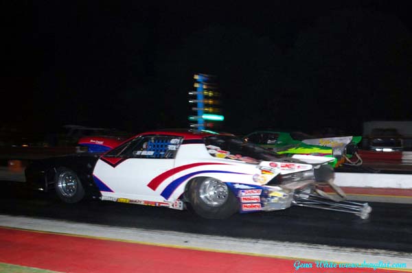 Chris Dollar won his first round race against Randy Reschner with a pedaling 4.84 130.73 win, Reschner again had problem and could only run a distant 5.63 124.60. H.T. Wilson and Jerry Cain faced off for the third time tonight with Wilson getting the holeshot parlaying that to a 4.72 win to Cain's very close 4.72.