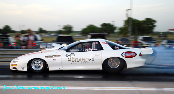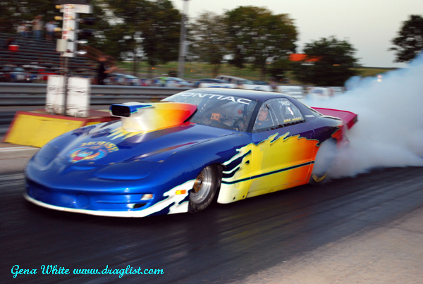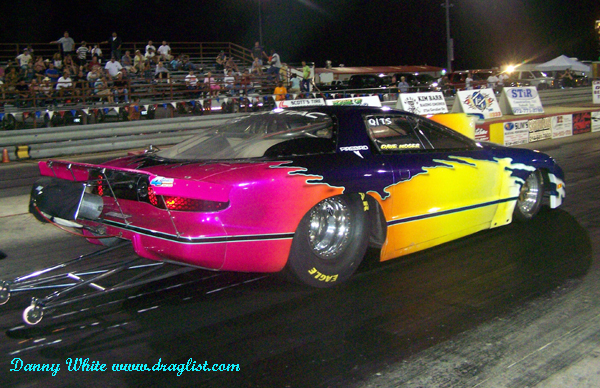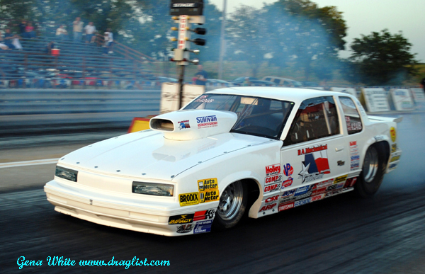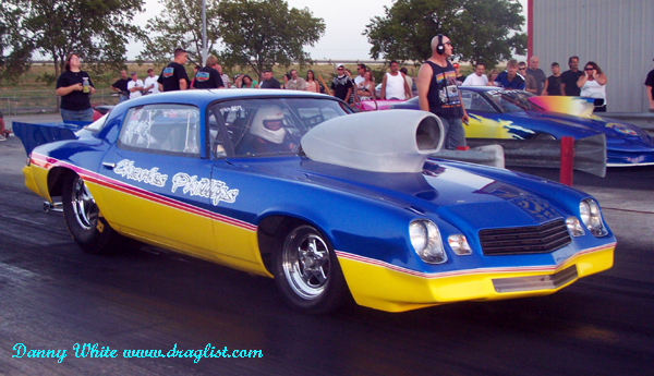 | Longtime Super Gas racer Charlie Phillips could not get his Camaro up to power tonight. |