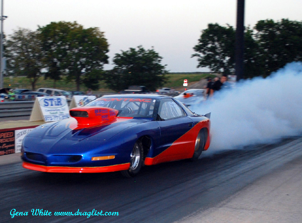 | Mike Jones staging right before he had to shut off the cool looking Jones & Frost Camaro SS. |