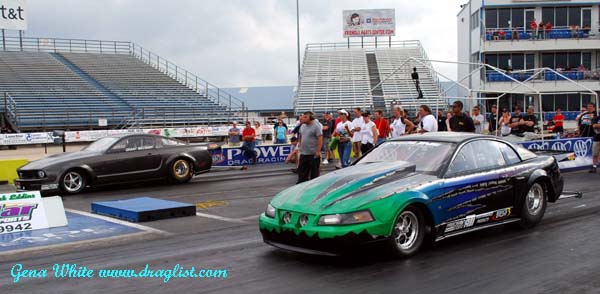 The number one and two qualifiers ended up in the finals and they put on a show for the crowd. Tim Lynch won this one with a wild 4.39 174.15 to the oh so close 4.415 172.19 of Grant McCrary. The Lynch Mob took the large $20,000 check and the bragging rights back to Georgia in a fast Stang!